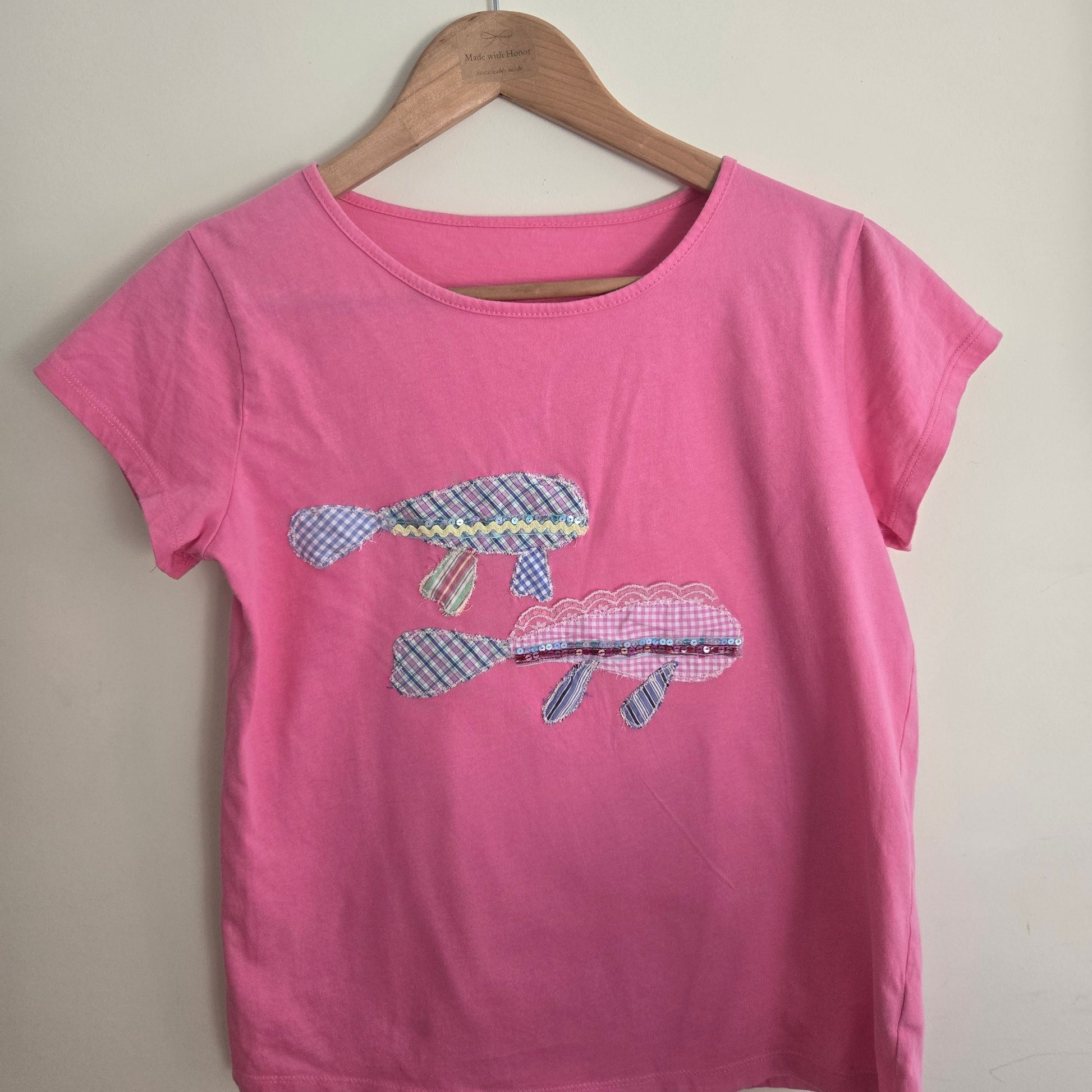 Pink t-shirt with 2 embroidered fishes.